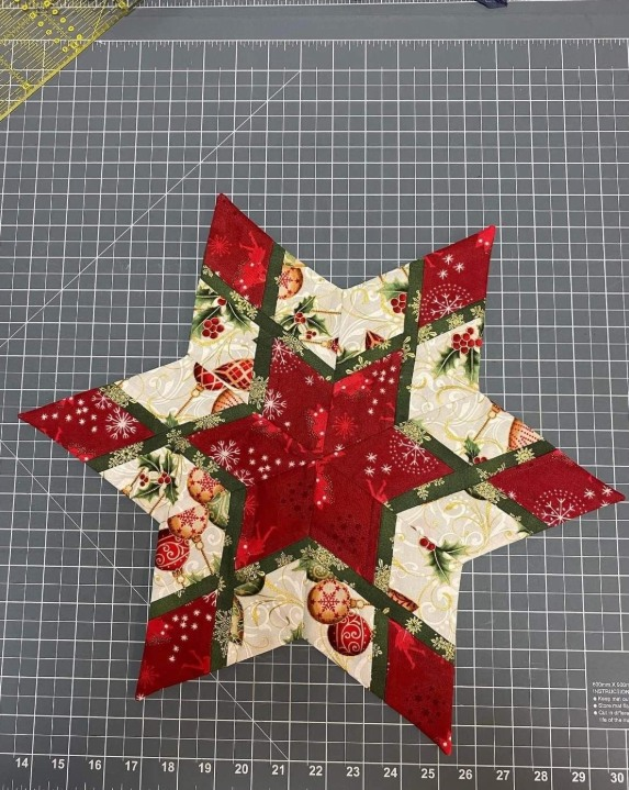 Let your holiday table sparkle with Merry Starshine – a radiant star-shaped quilt piece that captures the pure joy of the Christmas season. With every stitch, it tells a story of twinkling lights, crackling fires, and laughter shared under festive skies.